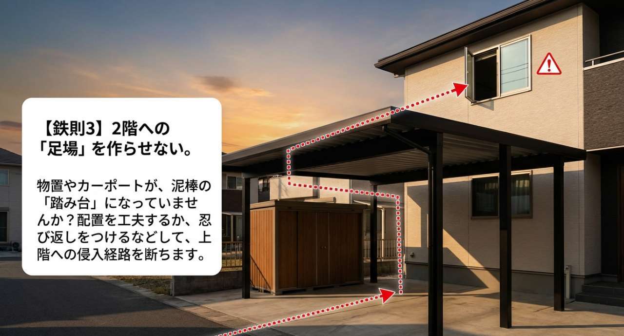 - 足場を作らない:室外機や物置の場所にも一工夫。