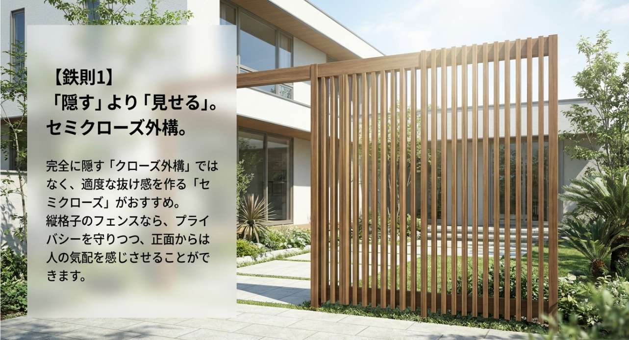 【鉄則1】「隠す」より「見せる」が正解!セミクローズ外構のすすめ