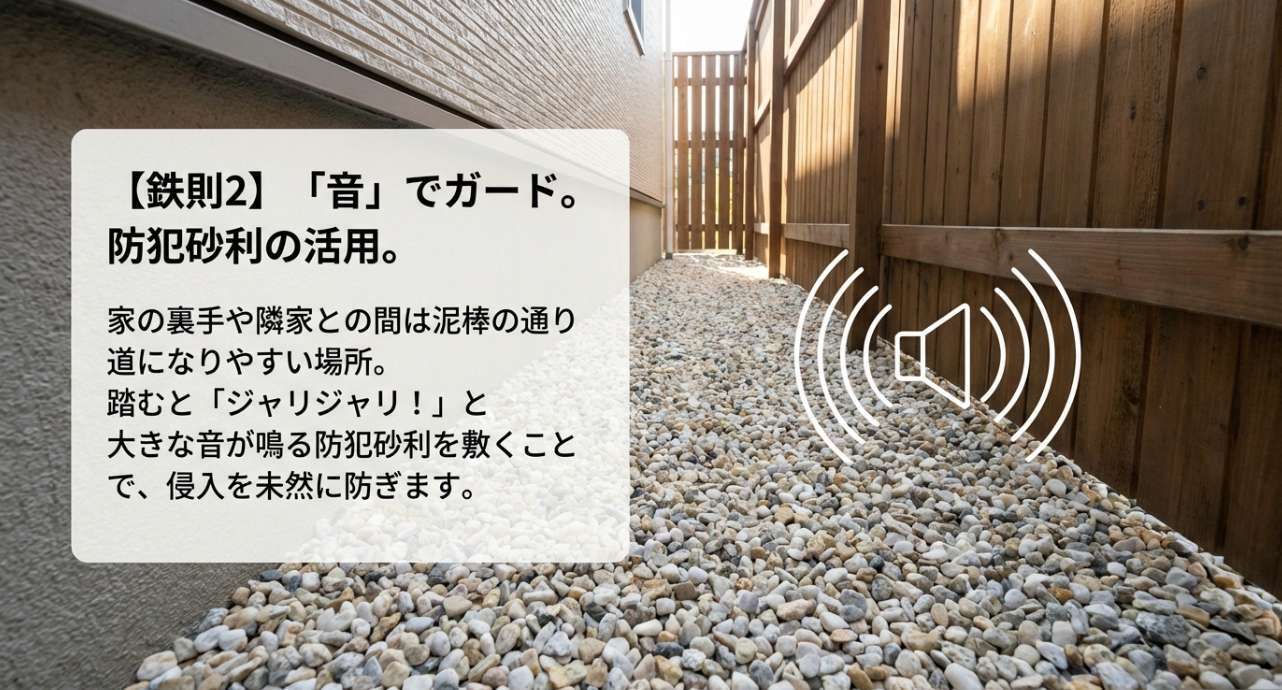 - 「音」と「光」の活用:砂利やライトでおしゃれにガード。
