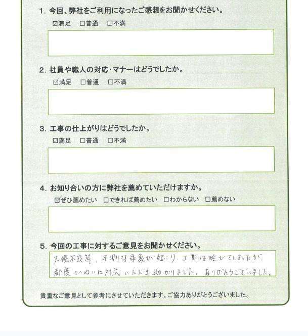 弊社が施工をしたお客様からお客様の声を頂きましたので、ご紹介します。